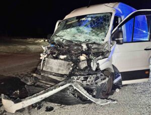Yük treni ile servis minibüsü çarpıştı: 4 yaralı