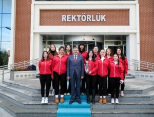 Sporcularla yakından ilgilenerek bir süre sohbet eden ve öğrencilerin hedefleri hakkında bilgi alan Odabaş, ziyaretin sonunda şampiyon voleybolcularla hatıra fotoğrafı çektirdi.